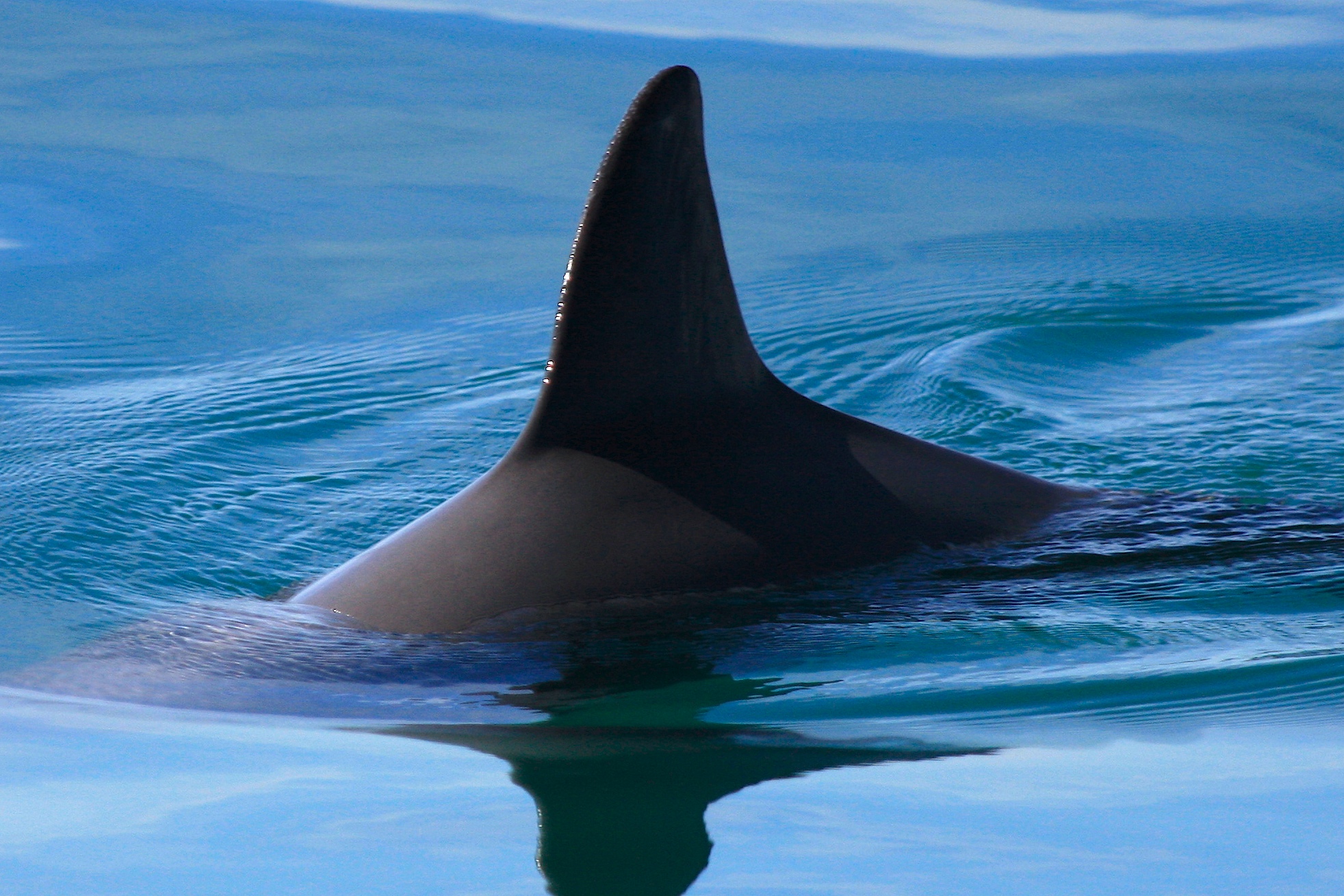 As the smallest porpoise species, vaquitas have stocky bodies with a tall, triangular dorsal fin proportionally larger than other porpoises.